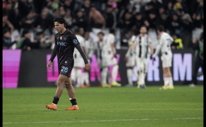 La sfida tra Juventus e Napoli termina 3-0, con i gol di David, Yildiz e Kostic, un Napoli decimato e scarico non riesce a strappare punti a Torino e si mette a -9 dall’Inter capolista. Il match inizia e la Juventus da subito imposta il gioco e va alla ricerca del vantaggio, andandoci vicino dopo 14 minuti con Conceiçao. Dopo pochissimo, il centrocampo bianconero Thuram si mette in proprio e calcia di destro a giro colpendo il palo, Napoli salvato dal legno. Ma il gol del vantaggio non tarda ad arrivare: siamo al minuto 22 e Locatelli spedisce palla in area dove trova David, fa a sportellate con Juan Jesus e insacca alle spalle di Meret, 1-0. Di lí a poco, Buongiorno salva clamorosamente un gol praticamente fatto, arrivando sulla linea e togliendo a Conceiçao la gioia del 2-0. I bianconeri sono totalmente padroni del campo e arrivano vicinissimi al raddoppio svariate volte, anche con Locatelli da fuori area. Dopo un minuto di recupero concesso, il primo tempo si chiude così, 1-0 per i padroni di casa che stanno gestendo questo risultato contro un Napoli a dir poco timido. Ricomincia il secondo tempo e gli azzurri tentano una reazione con Spinazzola che calcia, trova la respinta di Di Gregorio e Hojlund a pochi passi non riesce a ribadire in porta. Mentre la partita sembra abbastanza equilibrata, con la squadra di Conte che cerca di rendersi pericolosa, arriva il raddoppio juventino: Juan Jesus commette un errore grave e regala palla a Miretti, verticalizza e trova Yildiz che a tu per tu con Meret non sbaglia e sigla il 2-0. Oramai il Napoli sembra essersi arreso, con veramente pochissime chance di riprendere la partita; ed è quasi allo scadere, precisamente al minuto 86, che i bianconeri chiudono definitivamente il match con il 3-0: dal limite dell’area Kostic controlla palla e calcia, battendo Meret sul suo palo, K.O. definitivo. Vengono concessi 3 minuti di recupero che terminano senza problemi per la Juventus. Game Over all’Allianz Stadium, gli azzurri escono sconfitti e scivolano a -9 dall’Inter prima in classifica, ora la Juventus è a quota 42 a -1 dal Napoli terzo.