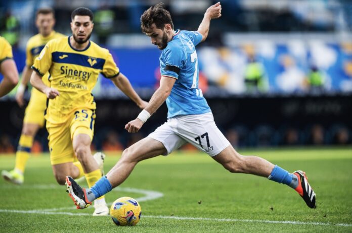 Il Napoli torna a vincere in Campionato battendo per 2-1 l’Hellas Verona in rimonta, in rete Coppola per la squadra ospite e Ngonge-Kvaratskhelia per i Campioni d’Italia. La squadra di Mazzarri deve rincorrere il quarto posto e per farlo serve una vittoria, inizia la partita con gli azzurri giá aggressivi con Kvhicha Kvaratskhelia che al decimo minuto calcia di sinistro e trova Montipo’ che respinge in calcio d’angolo. Da questo, si sviluppa un altro corner dove la palla viene respinta fuori, riecco il Georgiano che colpisce la palla al volo e anche questa volta il portiere del Verona riesce a bloccarla. Il primo tempo continua così, con il Napoli che crea numerose occasioni e con un Verona che riesce difficilmente ad uscire dalla propria metà campo. Finiti i primi 45 minuti con un Kvaratskhelia molto in forma, visibilmente carico e pronto per lasciare il segno in questo importante match. Inizia il secondo tempo e questa volta è la squadra ospite a suonare la carica, creando varie occasioni e impensierendo Gollini. Arriviamo al 72’ ed il gol che sblocca il match è di Coppola, su punizione pennellata da Suslov verso il centro dell’area, il difensore del Verona la prende di spalla e la insacca nell’angolo più lontano. Il Napoli costretto ad effettuare sostituzioni per provare a ribaltare la partita: entra prima Mazzocchi, poi Ngonge e Lindstrom per Mario Rui, Politano e Cajuste. Ed è proprio l’ex Cyril Ngonge a siglare il pareggio. Mazzocchi parte da sinistra e serve Lindstrom in area che attentamente serve Ngonge al centro dell’area e la insacca alle spalle di Montipo’, siamo al 79’, 1-1. Passano pochi minuti e il Napoli crea un’altra grande occasione, con un contropiede guidato dal Georgiano che serve Simeone: il cholito prima la impatta sul portiere, poi prova un pallonetto ma termina al di sopra della traversa. Arriviamo al minuto 87 ed arriva il gol del vantaggio del Napoli: di nuovo Mazzocchi entrato bene in partita recupera palla e la serve a Kvaratskhelia che dal limite dell’area fa partire un destro magico a giro, gol spettacolare del Georgiano e siamo sul 2-1 per il Napoli. Segnalati 5 minuti di recupero con il Verona che prova a pareggiarla ma senza risultati, finisce così il match. Il Napoli di Mazzarri vince con fatica grazie soprattutto ai subentrati e al fenomeno Georgiano che ha dominato la partita.